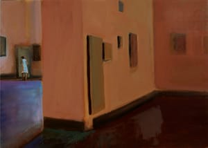 La Motta è noto sia per la sua opera pittorica sia per quella scultorea, ritrae e modella – senza illustrare – i paesaggi urbani, i suoi contorni e colui che ci abita. In mostra 20 nuovi lavori pittorici dell’artista nei quali gli spazi intimi e collettivi, sono enfatizzati nella loro autonomia espressiva restituendo all’osservatore frammenti eterogenei dell’immaginario odierno in una chiave di lettura che racchiude richiami persistenti e circolari fra gli elementi ivi presenti. Il suo è un linguaggio pieno di figure metaforiche, un costrutto di stratificazione semantica, grafica ed evocativa come in “The green Room”, dove pur riconoscendone la connessione e familiarità tra i soggetti, si viene trasportati in un universo possibile e lontano. Ogni stesura pittorica, velatura e tratto abbozzato è allo stesso tempo una allegoria, che evoca un’immagine mentale e ricostruisce una esperienza condivisa come in “Arazzo”, dove l’artista invita a intraprendere un viaggio alla scoperta di luoghi che albergano piccoli ritagli della storia dell’uomo. In “Donna in azzurro” o in “Parete gialla” appare un chiaro tracciato psicobiologico ad indicare una scia che deve essere ripercorsa ed esperimentata da colui che si trova davanti. Perché è infatti questo ciò che accade con le opere di La Motta, ognuna di loro è un sistema narrativo a catena, costruito per gradi di astrazione, che spinge ad entrare, smontare e riassettare l’ingranaggio sottostante che esula della materia pittorica e dalla pennellata.